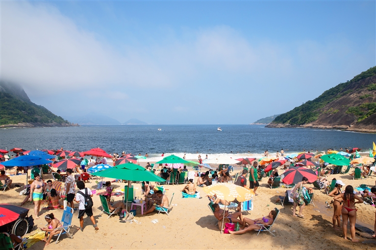 11月14日,人们在巴西里约热内卢红海滩上休闲。近日,巴西多地经历热浪袭击。巴西国家气象研究所已将15个州和联邦区列入气温高于平均水平的“危险”警报中。根据预测,接下来的几天,部分地区气温将超过40℃。 新华社记者 王天聪 摄