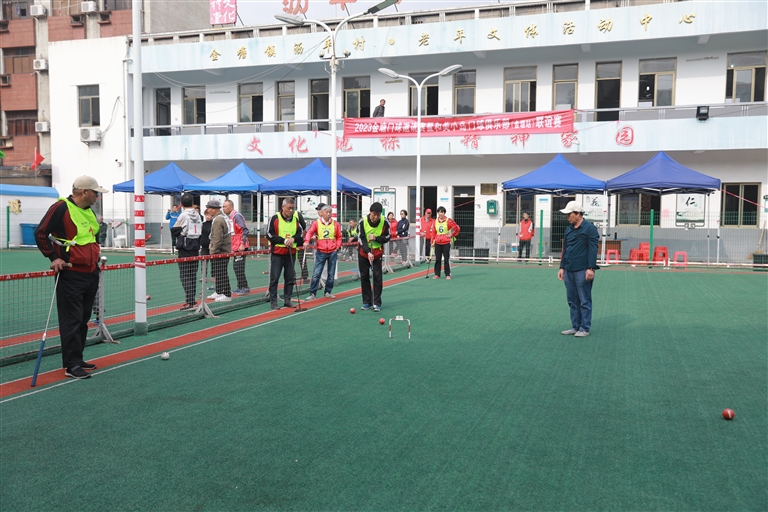 赛场上,门球队员们热情高涨、精神抖擞,巧妙送球、漂亮过门、精准撞击,充分展示了娴熟的门球技艺和默契的团队配合,也展现了他们老当益壮、积极向上的精气神。