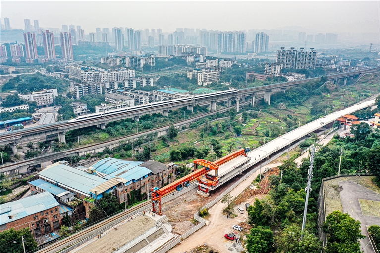 当日,在由中铁十一局集团承建的渝昆高铁川渝段楼湾特大桥建设施工现场,随着最后一片长32.6米、重830吨的箱梁稳稳落下,渝昆高铁川渝段箱梁全部架设完成。渝昆高铁是全国铁路网“八纵八横”主通道之一的京昆通道的重要组成部分,设计时速350公里。