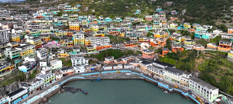 今年,嵊泗县嵊山镇结合“千万工程”,投资1630万元,对泗洲塘村海湾民居进行整体打造,统一立面色彩格调,增设夜间房檐亮化。原本颜色散乱、新旧不一的民居被提升改造成为泗洲塘村又一新打卡点。摄影 记者 陈永建