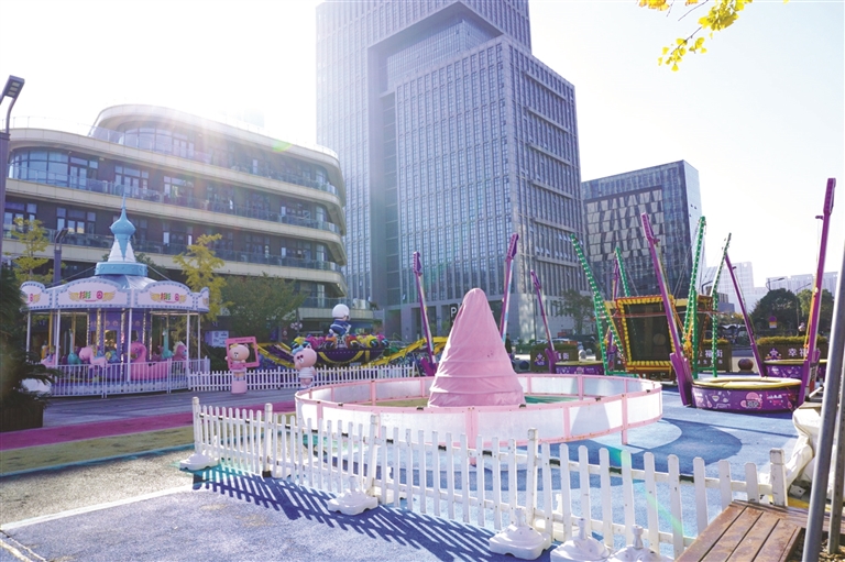 在这个儿童友好商圈内,消防栓、路边装饰桶等都被画上各色小表情,造型各异的卡通摆件随处可见,设置了儿童推车停车位,杉杉乐园里五彩缤纷的游乐设施为孩子们打造了一个梦幻的童话世界(见图)。