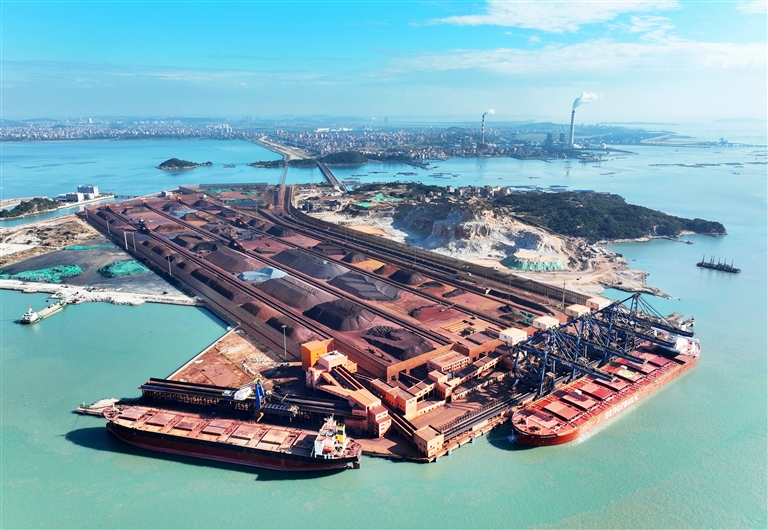 这是位于福建莆田的湄洲湾港罗屿铁矿石码头(11月29日摄,无人机照片)。共建“一带一路”倡议提出10周年来,福建围绕建设“21世纪海上丝绸之路”重要枢纽,不断开辟“一带一路”新航线,打造“丝路海运”国际综合物流服务平台,加密开行中欧班列,实施海铁联运、多式联运,发挥港口和铁路的中转枢纽效应,打造国内国际双循环枢纽节点,助力发展“一带一路”新通道。 新华社记者 林善传 摄
