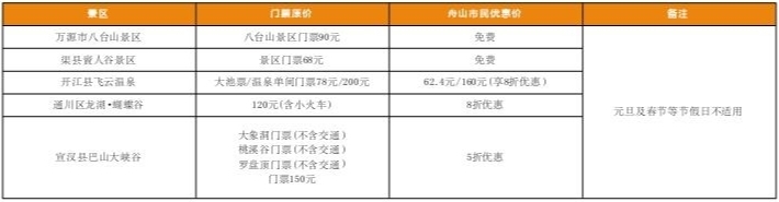 达州对舟山市民景区惠民信息