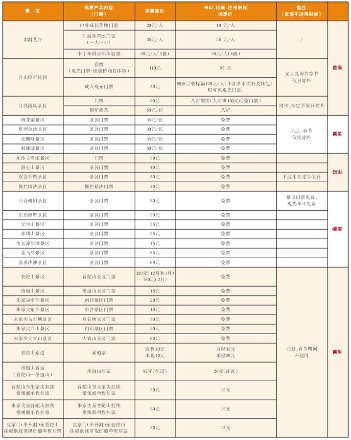 2023年-2024年“福在舟山”旅游惠民季舟山景区惠民信息