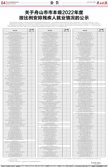 关于舟山市市本级2022年度按比例安排残疾人就业情况的公示
