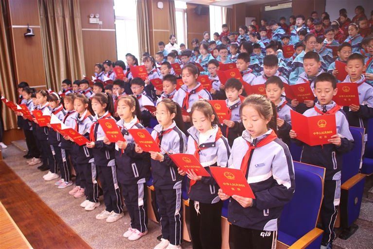 昨天上午,普陀区六横镇中心小学1400多名师生参加“宪法晨读”活动,学生们一齐朗读《中华人民共和国宪法》。12月4日是第十个国家宪法日。连日来,六横镇中心小学、峧头初级中学等学校开展形式多样的国家宪法日宣传教育活动。