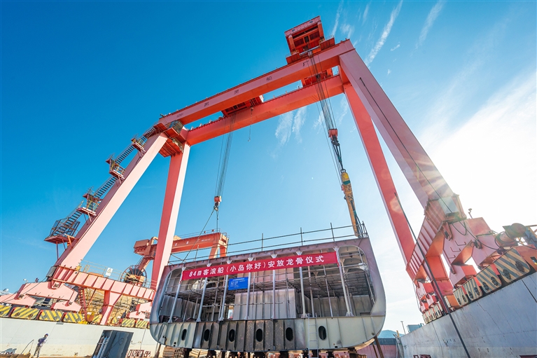昨天上午,在浙江凯灵船厂,一艘“小岛你好”新型游轮式客滚船完成龙骨安放,随后将进入船体合龙阶段。该船总长84.53米、型宽16.00米,设计载客451人,可承运客车、货车等各式车辆。船舶一至三层设有水吧、咖啡吧、观光休闲餐吧区、儿童游乐区、商务休闲区等。预计明年上半年建成,投入岱山燕窝山—嵊泗沈家湾航线。
