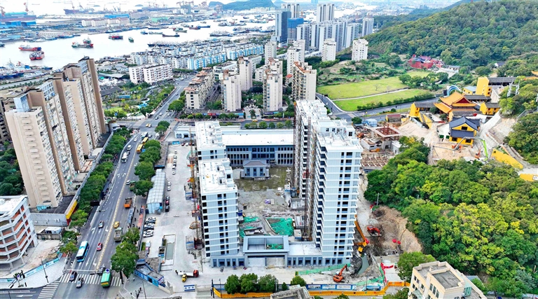 位于普陀区沈家门天吴隧道南口的养老公寓工程正在抓紧建设。该工程总投资2.22亿元,将建140套养老公寓以及医疗卫生、农贸市场等配套设施,预计明年8月完工。摄影 记者 陈永建