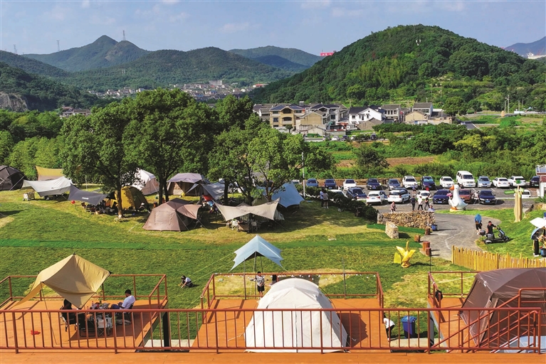 定海区小沙街道大沙村鹅鼻岭,周末露营爱好者络绎不绝 图/陈炳群