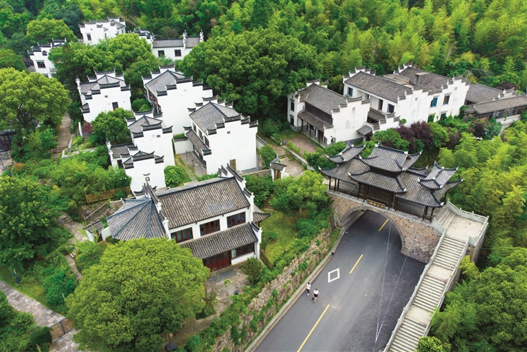 定海区干石览镇新建村,仿古民宿掩映在青山翠竹中 图/姚凯乐