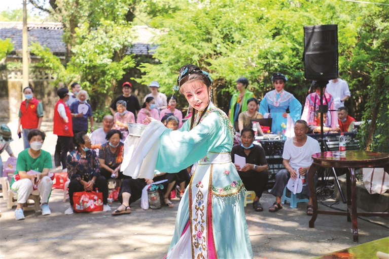 普陀区虾峙镇湖泥村,送戏到小岛 图/张磊