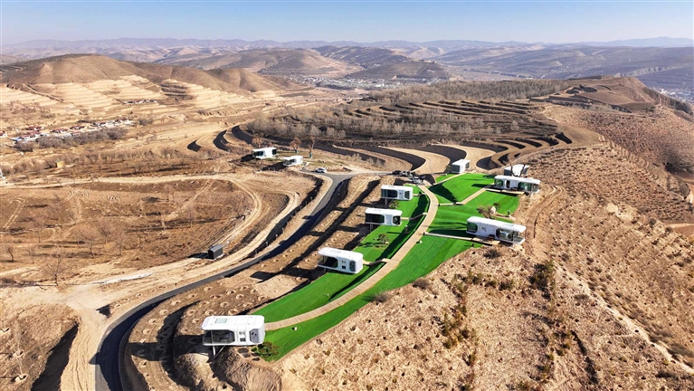 西吉县新营乡甘井村旅游示范点新建成的“太空舱营地”(12月1日摄,无人机照片)。