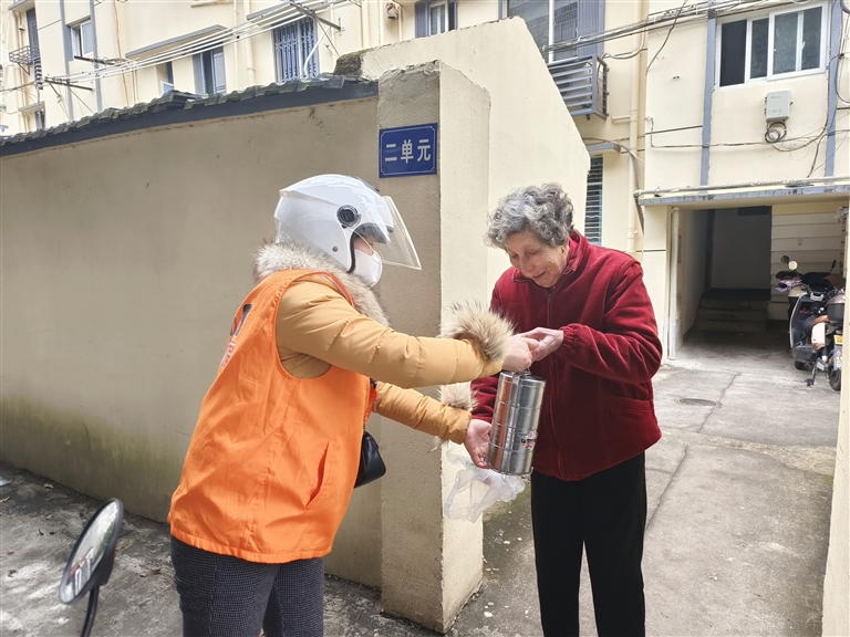 由于林香利行动不便,每次帮她送餐时,徐海君都会将餐盒打开,方便她用餐。