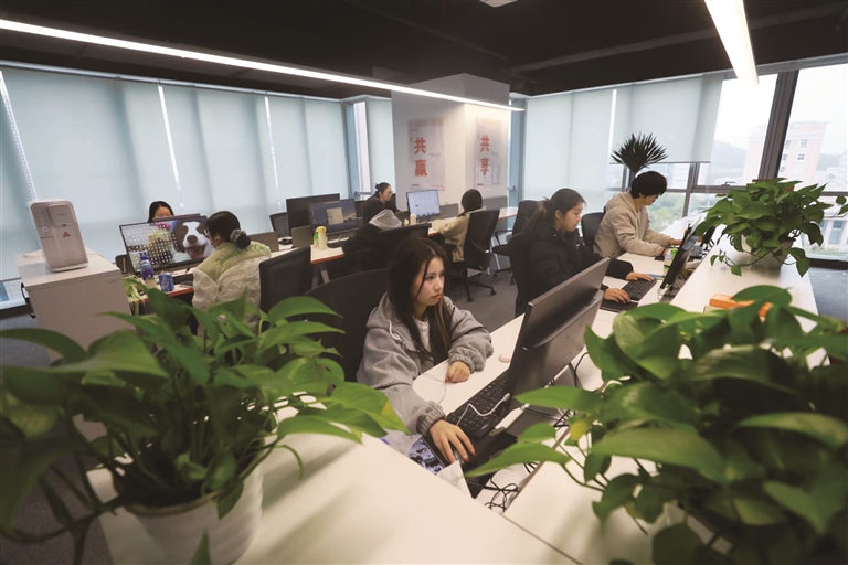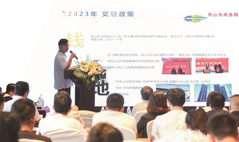 周鹏介绍,针对舟山人才紧缺、未来产业发展需求量大等现状,园区正在进一步加强校企合作,创新“教育+产业”人才培养模式,联动高校开展跨境电子商务应用型人才培养工作,实现校企互动、无缝对接。今后预计每年实现500人以上高校产教融合驻训,提升在校学生在美工、摄影、产品运营等岗位的技能。同时,通过不断引入电商企业,提供高质量就业平台,预计每年可创造就业岗位150个。