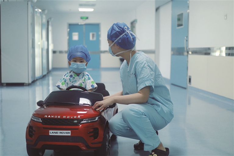 入院温馨提示卡做成了卡通形状,空白墙面上涂上了各种彩绘,开着玩具小汽车去接受治疗……这些“儿童友好”元素的加入,让孩子们走进医院减少一份恐惧,多了一份温馨与贴心。