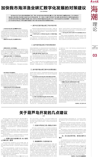 加快我市海洋渔业碳汇数字化发展的对策建议