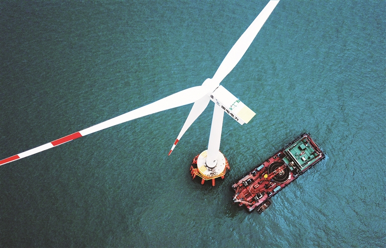 2021年5月16日,位于舟山北部海域的岱山4号海上风电并入电网,海风“送来”的绿色能源通过电网,源源不断输送到鱼山岛,为其提供清洁低碳用能保障。