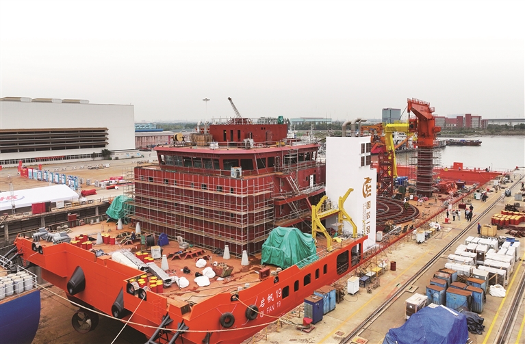 排水量2.4万吨,载缆量1万吨,堪比轻型航空母舰……11月9日,由国网舟山供电公司自主研发的全国最大海缆施工船“启帆19号”正式下水,标志着“国蛟一号”再添重器。