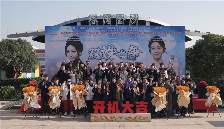 12月5日上午,网络现代都市爱情剧《双姝之争》剧组在桃花岛塔湾金沙举行开机仪式。