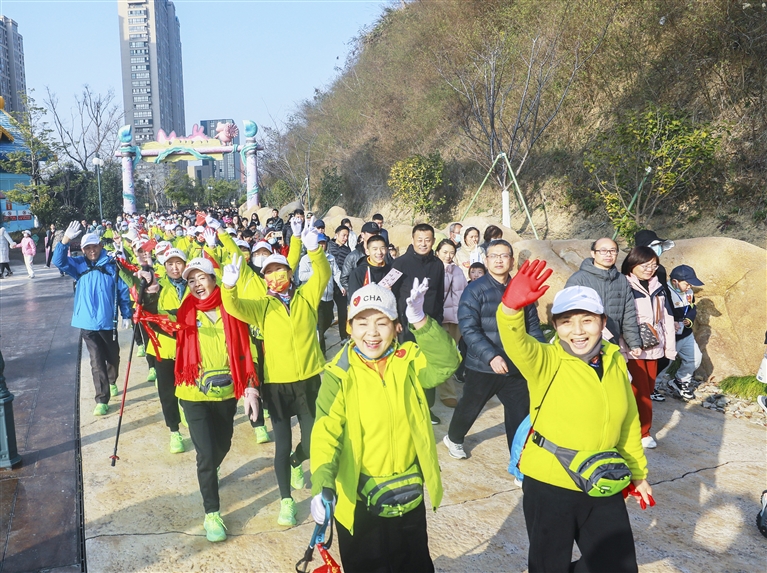 本报讯 年年如意,步步登高。昨天上午,“福在舟山”2024年全国新年登高健身大会(舟山分会场)活动在热闹喜庆的舞狮表演中拉开序幕,千余名健身爱好者沐浴着冬日暖阳,带着对新年的美好祝愿拾级而上,向新城鼓吹山进发(见图)。