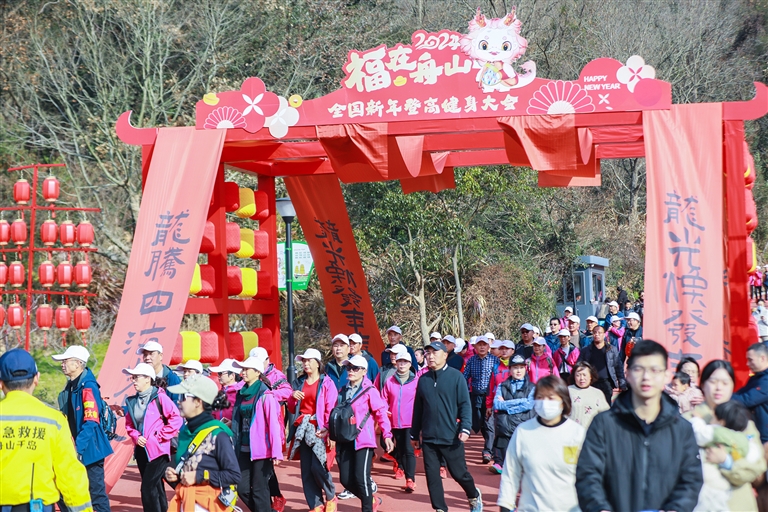 2024年的第一天,由市实施全民健身计划领导小组指导,市文广旅体育局、新城管委会主办的“福在舟山”2024年全国新年登高健身大会(舟山分会场)活动在热闹喜庆的舞狮表演中拉开序幕,千余名健身爱好者带着对新年的美好祝愿,向新城鼓吹山进发。这已是我市举办的第9届新年登高活动。