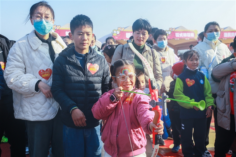 活动除登高健身外,还设置了少儿体育展示、国民体质监测等丰富多彩的配套活动。主办方在沿途设置了五个打卡点位,市民体验投沙包、投壶、蹴鞠等趣味运动后集齐印章即可领取迎新礼包。主办方现场准备的超值惊喜大奖更为市民带去了新年的第一份幸运。