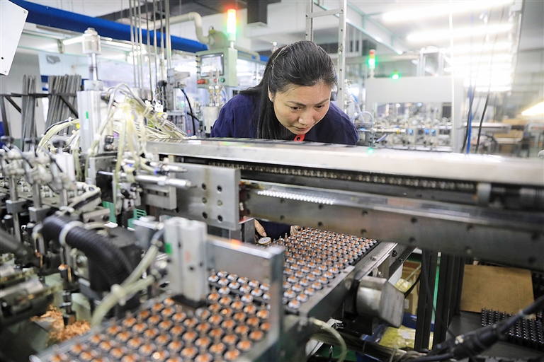 近日,在位于定海盐仓的浙江金达电机电器有限公司生产车间内,20条电机转子数字化生产线正满负荷运转。目前该公司订单已排到3月份,生产的微电机供应给飞科、康奈尔等国内外知名企业。摄影 记者 陈永建
