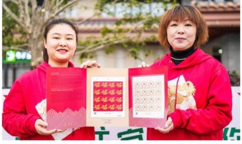 1月5日,工作人员在贵州省安顺市龙宫风景区展示《甲辰年》特种邮票。