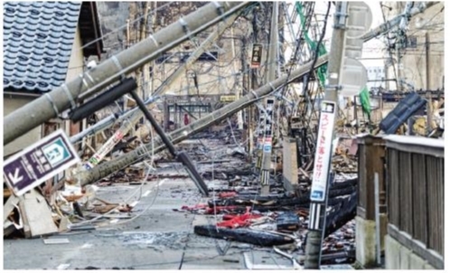 日本石川县轮岛市“轮岛早市”被地震引发的大火烧成废墟(1月4日摄)。