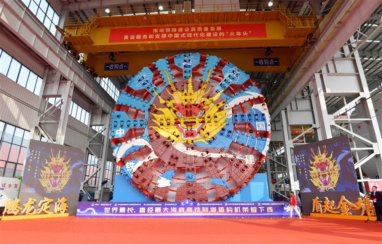 “定海号”盾构机刀盘涂装了东海龙王神话形象,寓意为“定海神龙”,也表达了建设者攻坚海底高铁隧道、挑战世界级工程难题的决心。