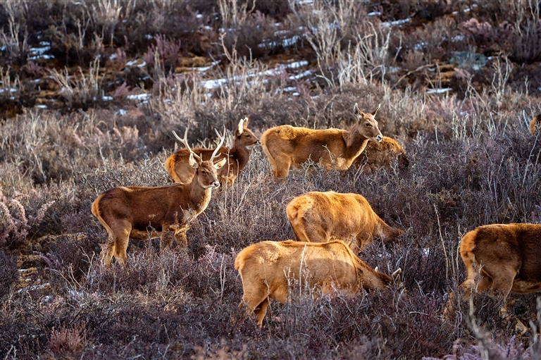 2023年11月发布的《新时代党的治藏方略的实践及其历史性成就》白皮书提到,曾被国际社会认为已绝种的西藏马鹿“失而复得”,由发现时的200余头增长到800余头。 新华社记者 旦增尼玛曲珠 摄