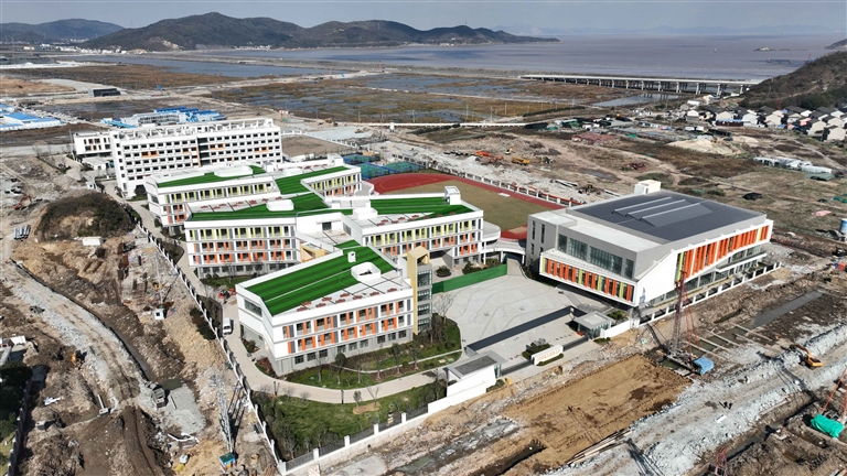岱山实验学校教育集团双峰新城学校近日建成,将于今年投入使用。该学校项目总投资约3.4亿元,总建筑面积65114.61平方米,设14个班规模的幼儿园和36个班规模的小学初中九年一贯制学校。摄影 记者 陈永建
