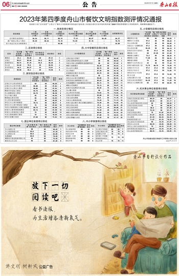 2023年第四季度舟山市餐饮文明指数测评情况通报