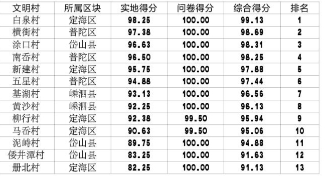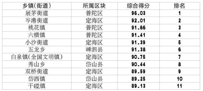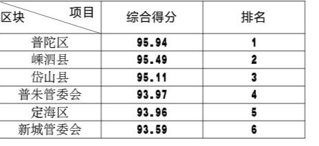根据《舟山市创建全国文明城市常态管理测评办法》,市创建办委托专业评估机构对定海区、普陀区、岱山县、嵊泗县、新城管委会、普朱管委会开展了2023年第四期舟山市城市文明程度指数测评工作,现将测评情况排名通报如下。