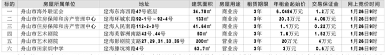 定于2024年1月26日在舟山市公共资源交易网上对下列标的租赁权进行网上竞价,现公告如下: