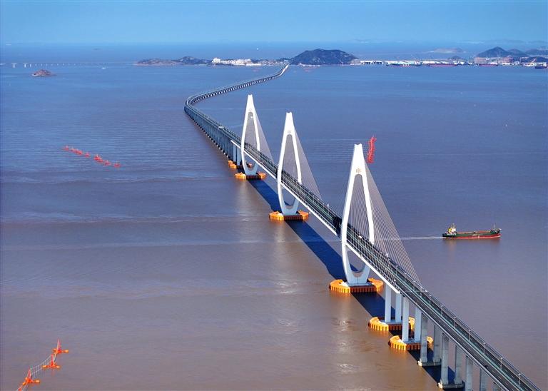 近日,舟岱大桥非通航孔桥两边的橙黄色浮基格外醒目。这是浙江交通集团投资建设的非通防撞系统,采用“物理拦截设施+水上监控预警系统”组合设计,为舟岱大桥提供安全保障。