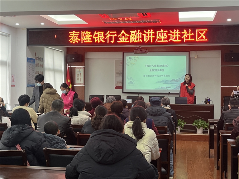 本周,泰隆银行定海城南支行业务二部联合盐仓街道塔山社区服务中心举办了一场金融讲座,为居民讲解理财和资产配置的重要性,并进行反诈宣传。