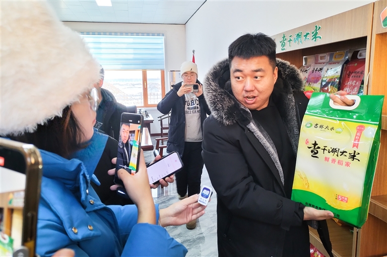 松粮集团晟源米业工作人员介绍查干湖大米 摄影 记者 姚凯乐