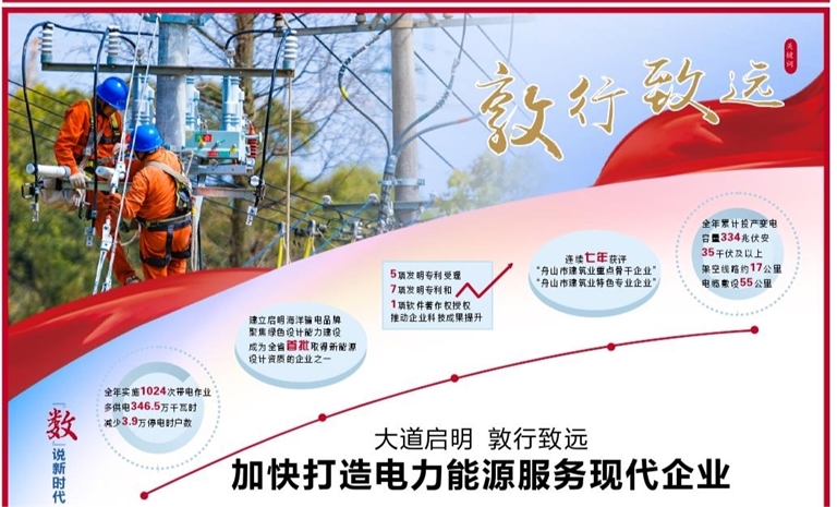 成功投运110千伏马关输变电工程、华润岱山双剑涂渔光互补项目,标准化开工110千伏万二、北塘输变电工程,其中万二变工程施工精益化管理获国网浙江电力领导肯定。顺利投运舟山东海实验室总部园区等重点用户工程,为海洋经济高质量发展、构建“小岛你好”新图景提供强大而持久的能源动力。