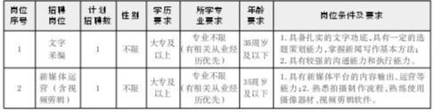 舟山传媒文化有限公司因事业发展需要,面向社会公开招聘2名工作人员(劳务派遣性质),具体要求如下: