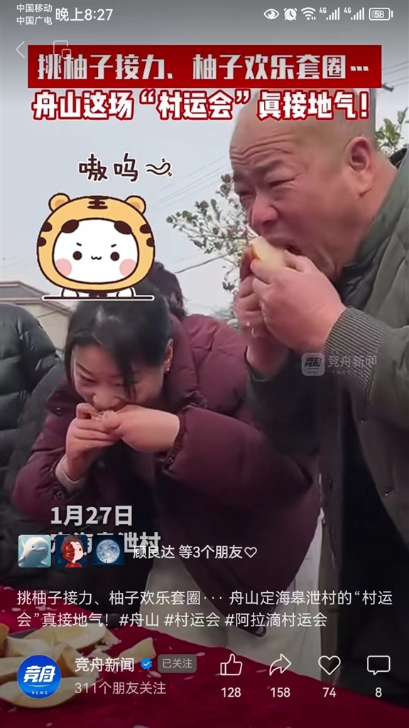“村民参赛热情特别高,大家都开心!”皋泄村党委副书记庄浩介绍,香柚是皋泄村的“致富果”,举办以香柚为主题的村运会,让村民一起享受丰收的喜悦,欢欢喜喜迎新春,日子过得越来越红火。