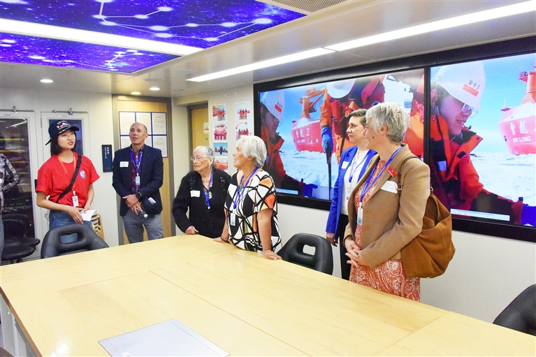 1月28日,在新西兰克赖斯特彻奇市利特尔顿港,人们在公众开放日活动期间参观“雪龙2”号。正在执行中国第40次南极考察任务的“雪龙2”号28日在新西兰克赖斯特彻奇市利特尔顿港举行公众开放日活动。活动当天,当地政界、民众约400人登船参观了“雪龙2”号。 新华社记者 卢怀谦 摄