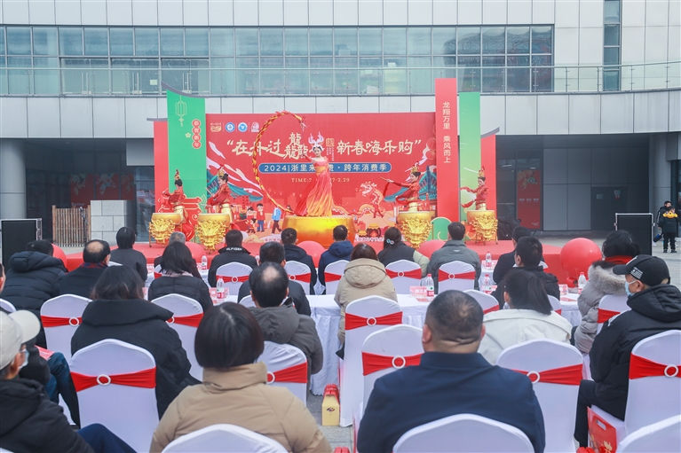 为营造欢乐祥和的节庆气氛和浓厚的消费氛围,促进消费提升和潜力释放,1月27日上午,由市商务局主办的“在舟过龘年·新春嗨乐购”——2024浙里来消费·跨年消费季暨舟山年货节活动在新城正式启动,聚焦家居消费、汽车消费、文旅消费、数字消费、夜经济消费等核心消费板块,以1+5+N的内容架构展开,推出形式多样、丰富多彩的促消费活动,为市民游客打造一场充满趣味、年味、品味的跨年消费狂欢盛宴。