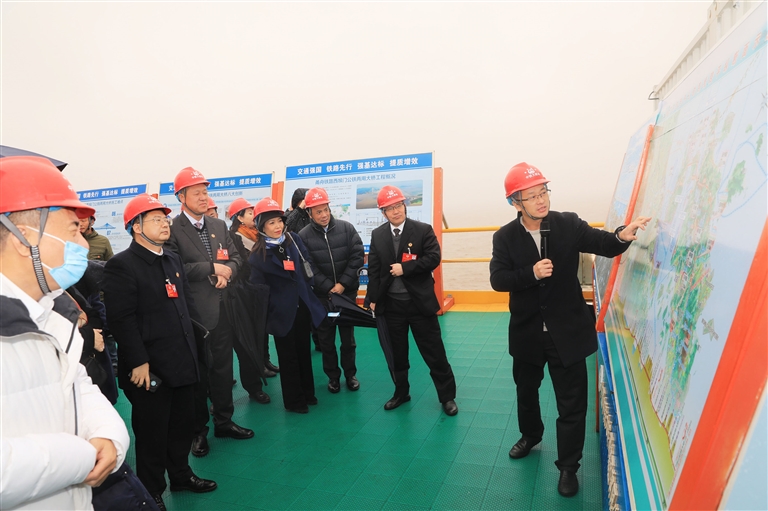 “甬舟铁路经过我们金塘的这段工程,是世界级大工程,太让我自豪了。”市政协住香港委员蒋星,一踏上金塘就冒着雨用手机拍下一个个令她激动的画面。
