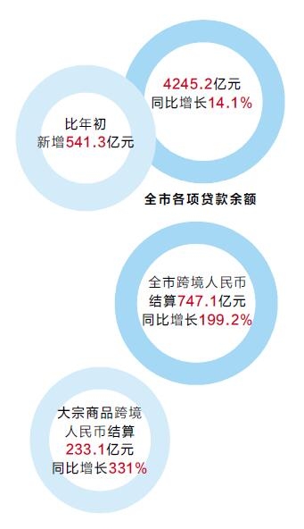 2023年,全市跨境人民币结算747.1亿元,同比增长199.2%,其中,大宗商品跨境人民币结算233.1亿元,同比增长331%,结算占比9.4%。