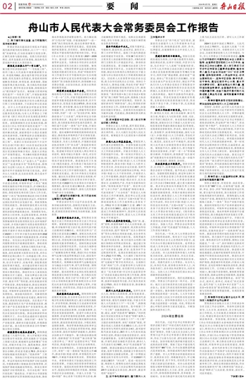 舟山市人民代表大会常务委员会工作报告