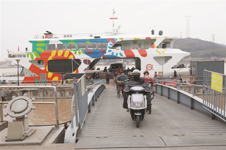 本报讯 近日,来往金塘大鹏岛与沥港的沥鹏渡涂上了“小岛你好”主题元素并投入使用。
