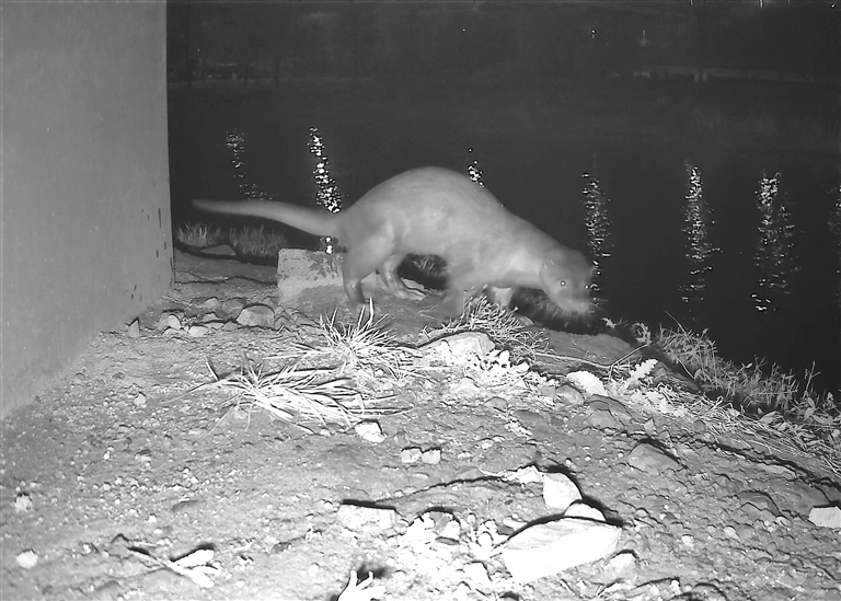 “水獭是一种水陆两栖的哺乳动物,偏爱昼伏夜出,白天几乎看不到它们的身影。”打开何既白电脑里的视频,一段段在夜间被拍摄到的水獭活动画面都是黑白色的,它们或独自出行,或结伴活动,在岸边、桥洞打闹嬉戏,用粪便标记地点。