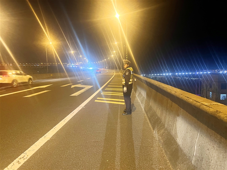 夜深了,甬舟高速上汽车的尾灯,绵延成了一条长长的、通向家的方向的线,而董海舟们的执勤还在继续……