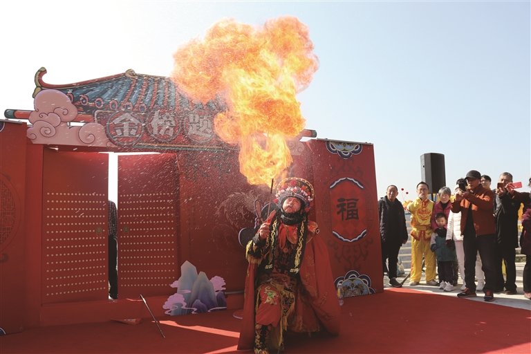 龙腾虎跃,状元及第。正月初三,“文星高照 状元及第”活动率先在擂鼓山段状元阁启动,歌曲《如愿》《诗经》;黄梅戏《女驸马中状元》;互动游戏《龙年成语接龙》等一个个节目让众多市民乐在其中。